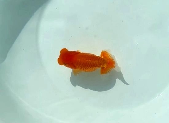 強烈な龍頭、朱赤で中寸の太い体形で、目先と目幅と筒幅があり迫力ある魚です。尾形良く泳ぎも安定しています。