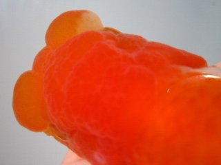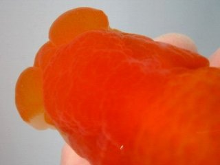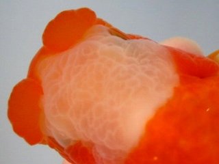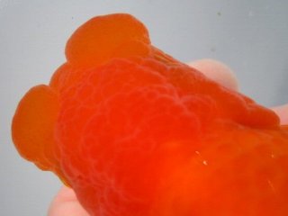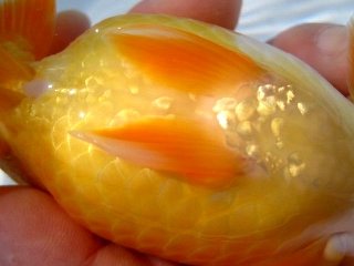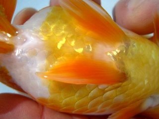 | *種親の血統を重視し、「現代らんちゅう:前方への龍頭等」としての特徴を備えた魚、 柄、頭骨、全体の骨格、筒の太さ、尾形、鱗揃いの良い魚を選抜しました。 |